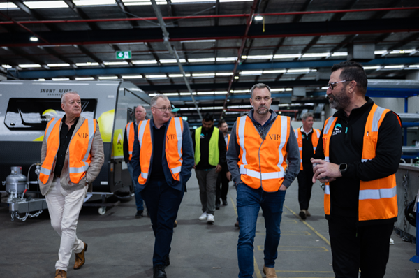 近日,由澳大利亚房车工业协会(Caravan Industry Association of Australia)牵头,联合新南威尔士州、昆士兰州及维多利亚州三大核心州房车协会的领袖代表组成考察团,莅临新吉奥集团位于墨尔本的Snowy River房车制造工厂,开展深度参观与交流活动。